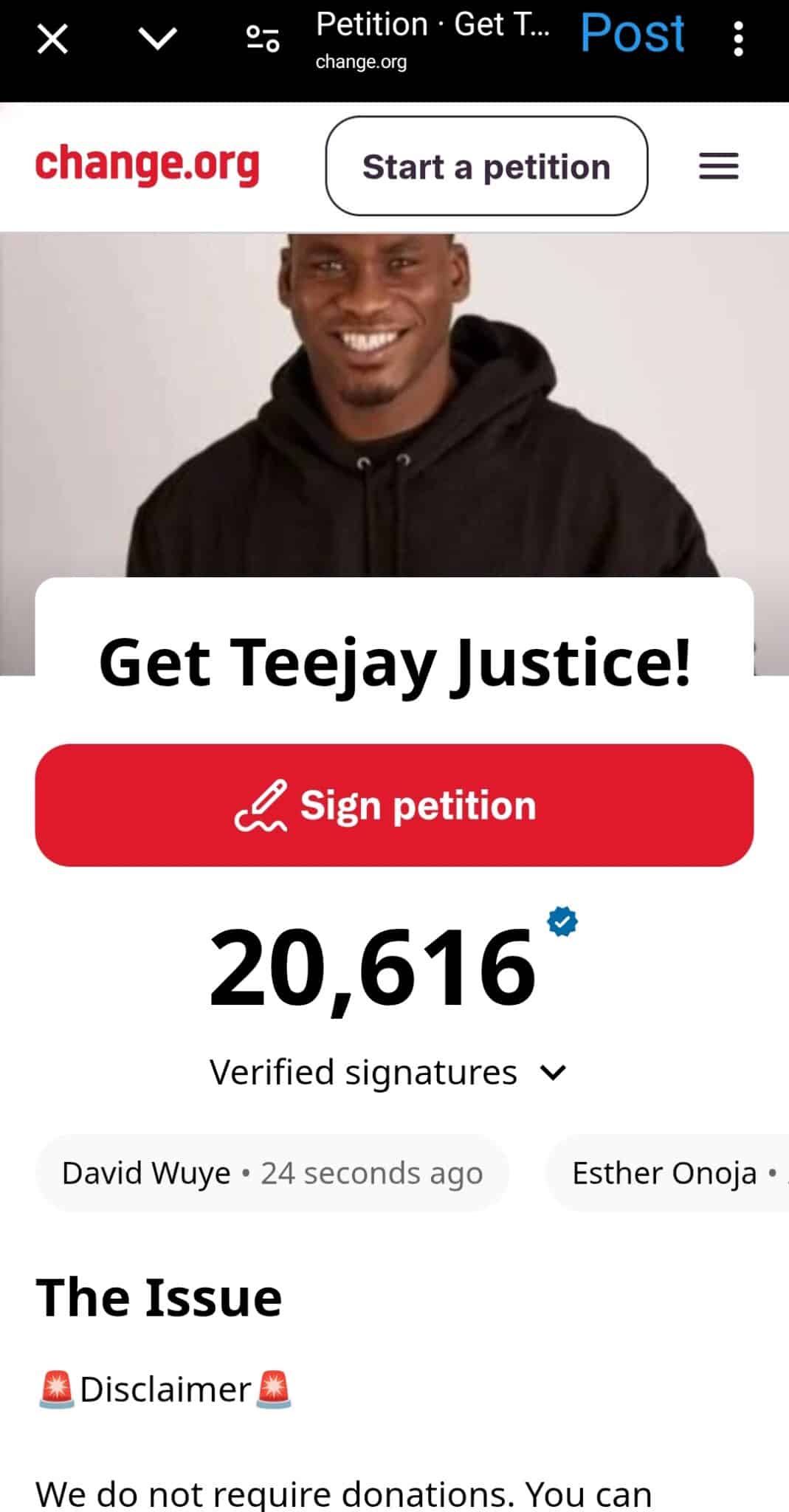 According to a petition seeking justice for him, TeeJay was riding along Ozumba Mbadiwe Road at about 10:20 PM when Biola, driving a vehicle with license plate LND 418 JR, merged onto the expressway without checking for oncoming traffic, crashing into him.