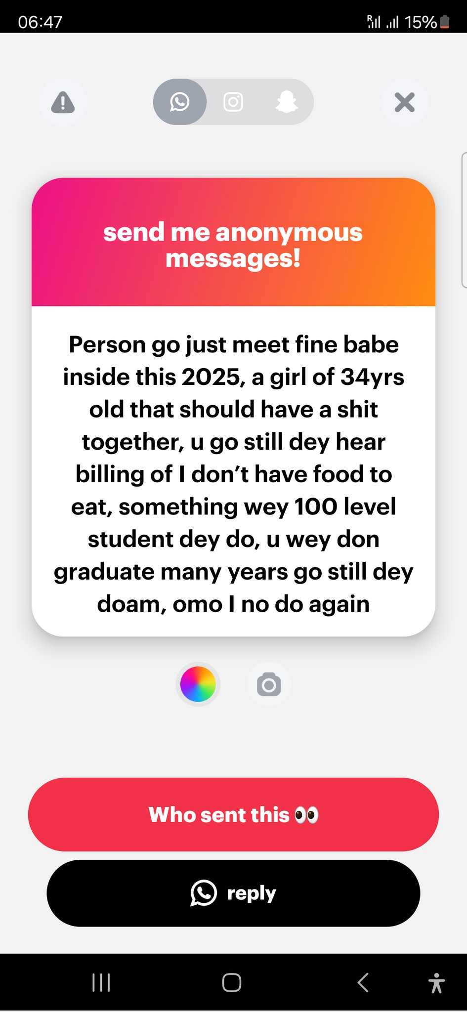 “Person go just meet fine babe inside this 2025, a girl of 34yrs old that should have a shit together, u go still dey hear billing of I don’t have food to eat, something wey 100 level student dey do, u wey don graduate many years go still dey doam, omo I no do again”