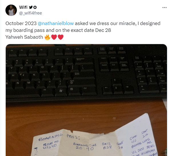 Man receives boarding pass after Nathaniel Bassey asked them to dress their miracle