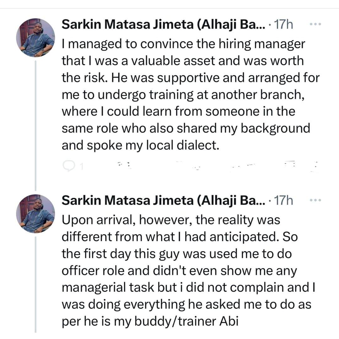 @Elmatardorr noted that the rest of his experience with the Nigerian was fraught with problems, and instead of showing him the ropes, he was using him like a casual worker.