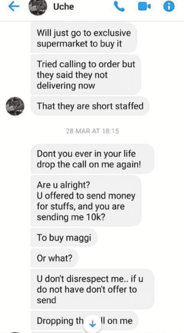 Man releases chats where a woman called him out for sending her only 10K to stock up during Coronavirus lockdown