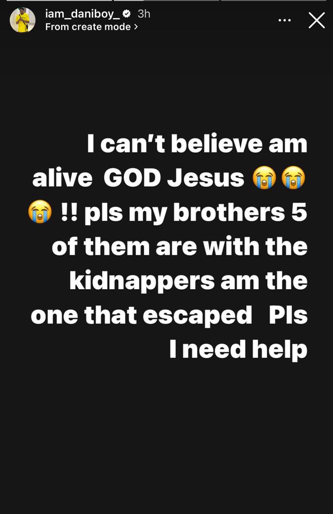 In a viral video, Daniel said that he was driving to Kogi state with five of his siblings and friends when they were kidnapped and taken into the forest.