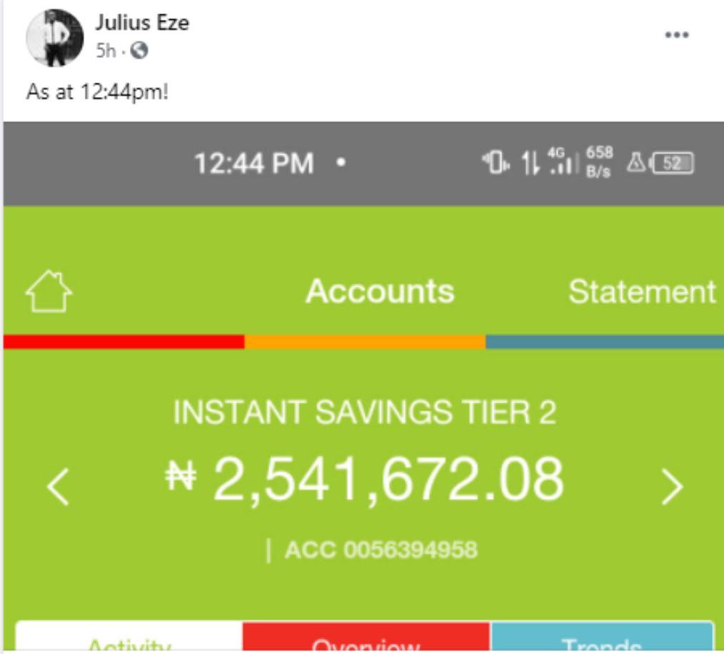 A man identified as Julius Eze on Facebook has revealed that his account was credited with the sum of N2.5 million naira mistakenly by a stranger.