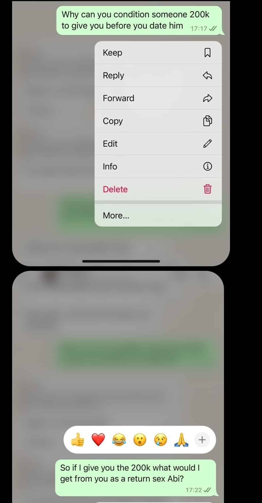 “After she told me this, I immediately blocked her on WhatsApp and deleted her number. But a few minutes later, when she noticed I had blocked her, she called me on the phone and said she was just joking to see if I’m capable of taking care of her.”