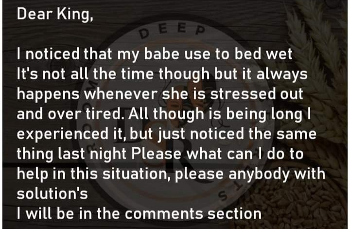 A concerned man solicits advice over his girlfriend who occasionally wets the bed whenever she’s stressed.