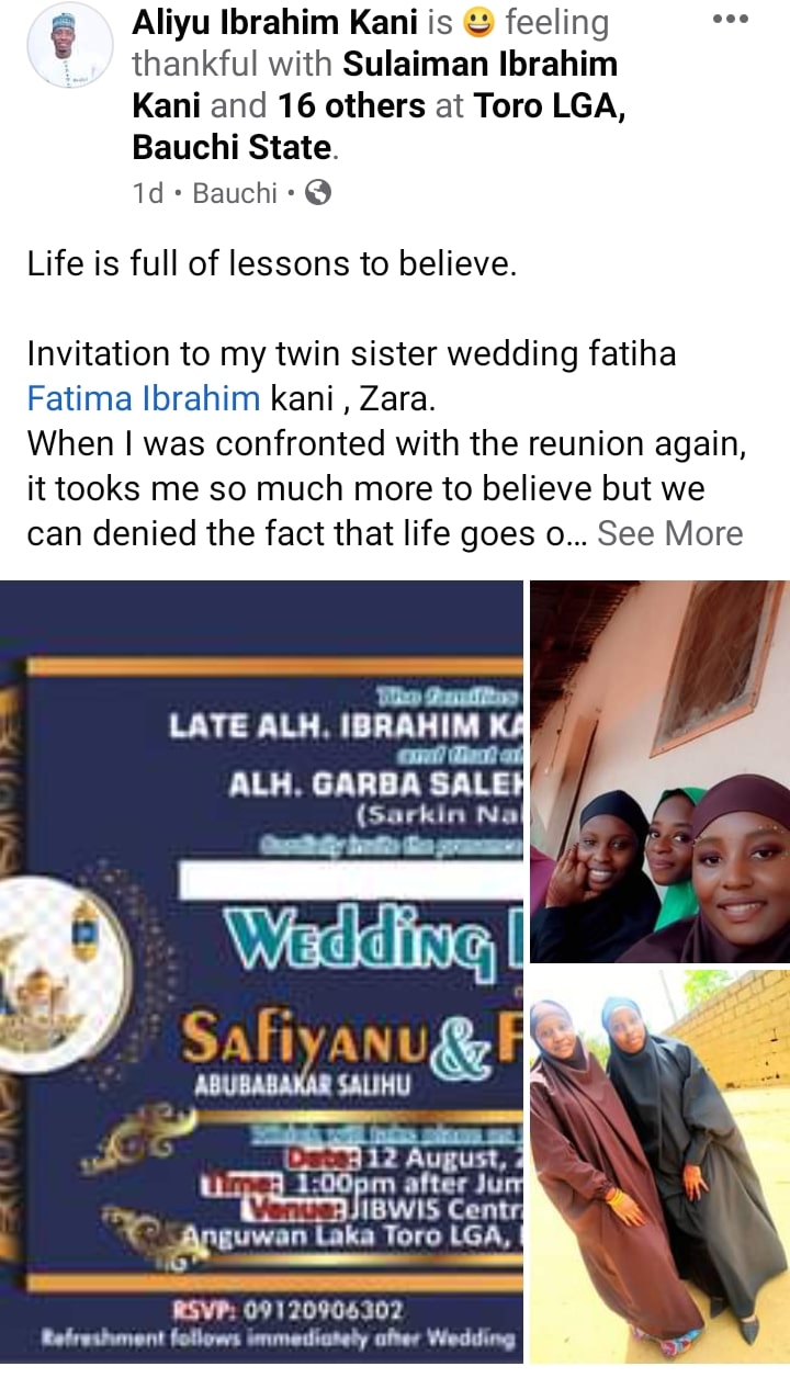Yesterday, the elder brother of the deceased lady took to his Facebook page to announce that the wedding would still hold, but this time, the young man would me marrying Fatima, the sister of the deceased lady.