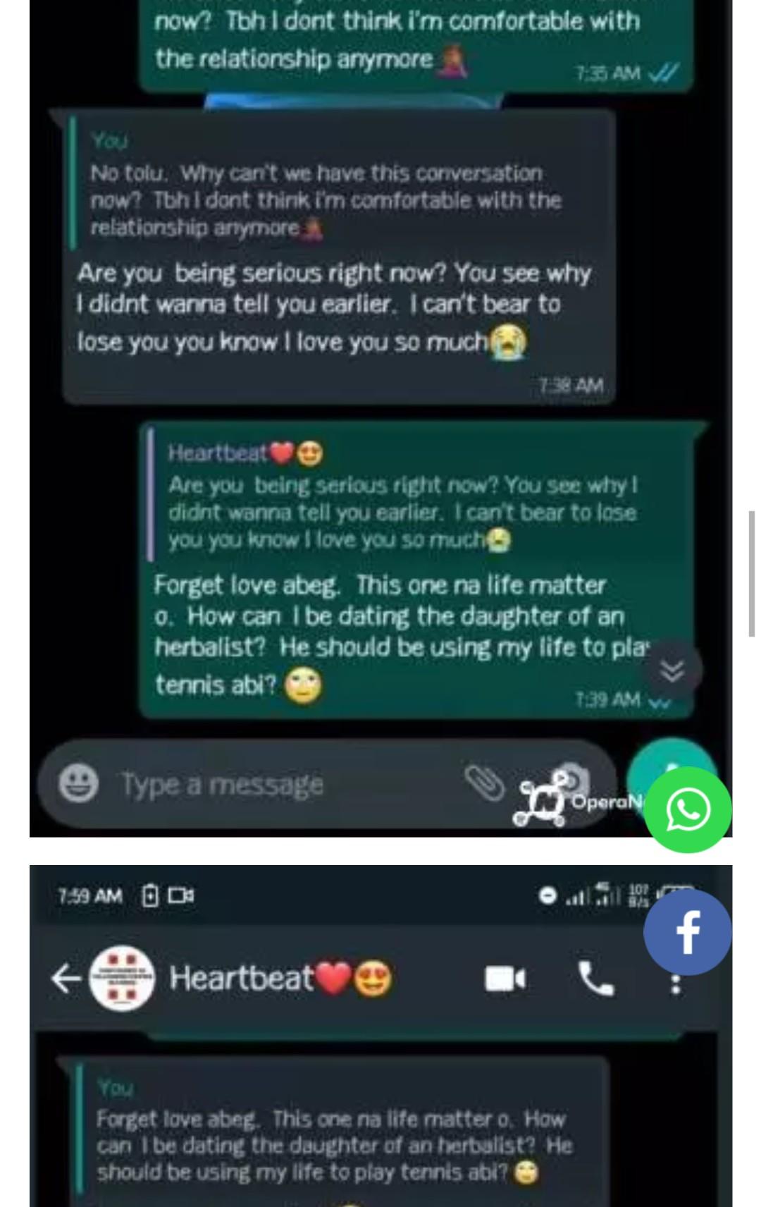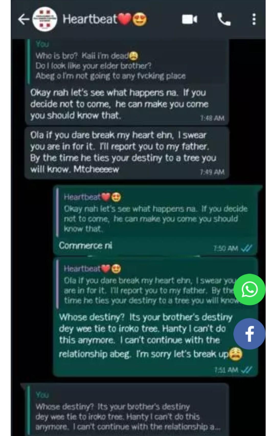 Man shares chat with herbalist’s daughter who threatened to tie his destiny to a tree if he breaks up with her