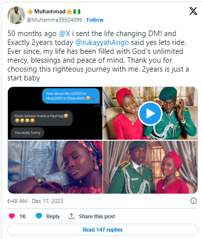 A Nigerian man has captured the attention of many online by sharing the hilarious toasting line he used to win his wife’s heart on Twitter.