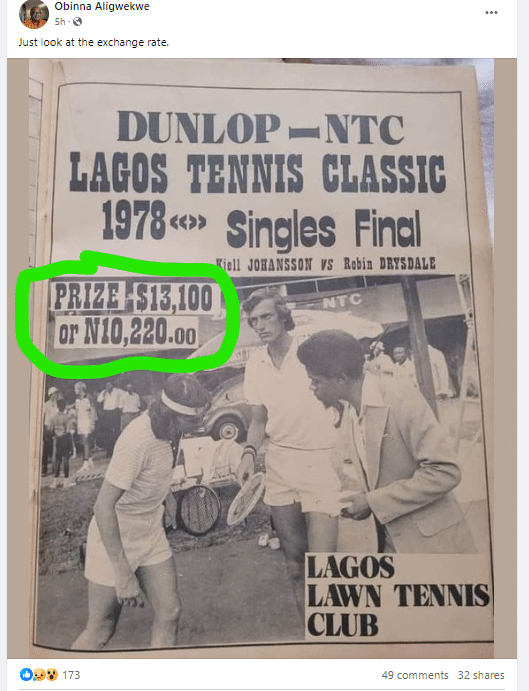 This exchange rate, reflecting the value of the US Dollar compared to the Naira in 1978, is what has taken social media by storm.