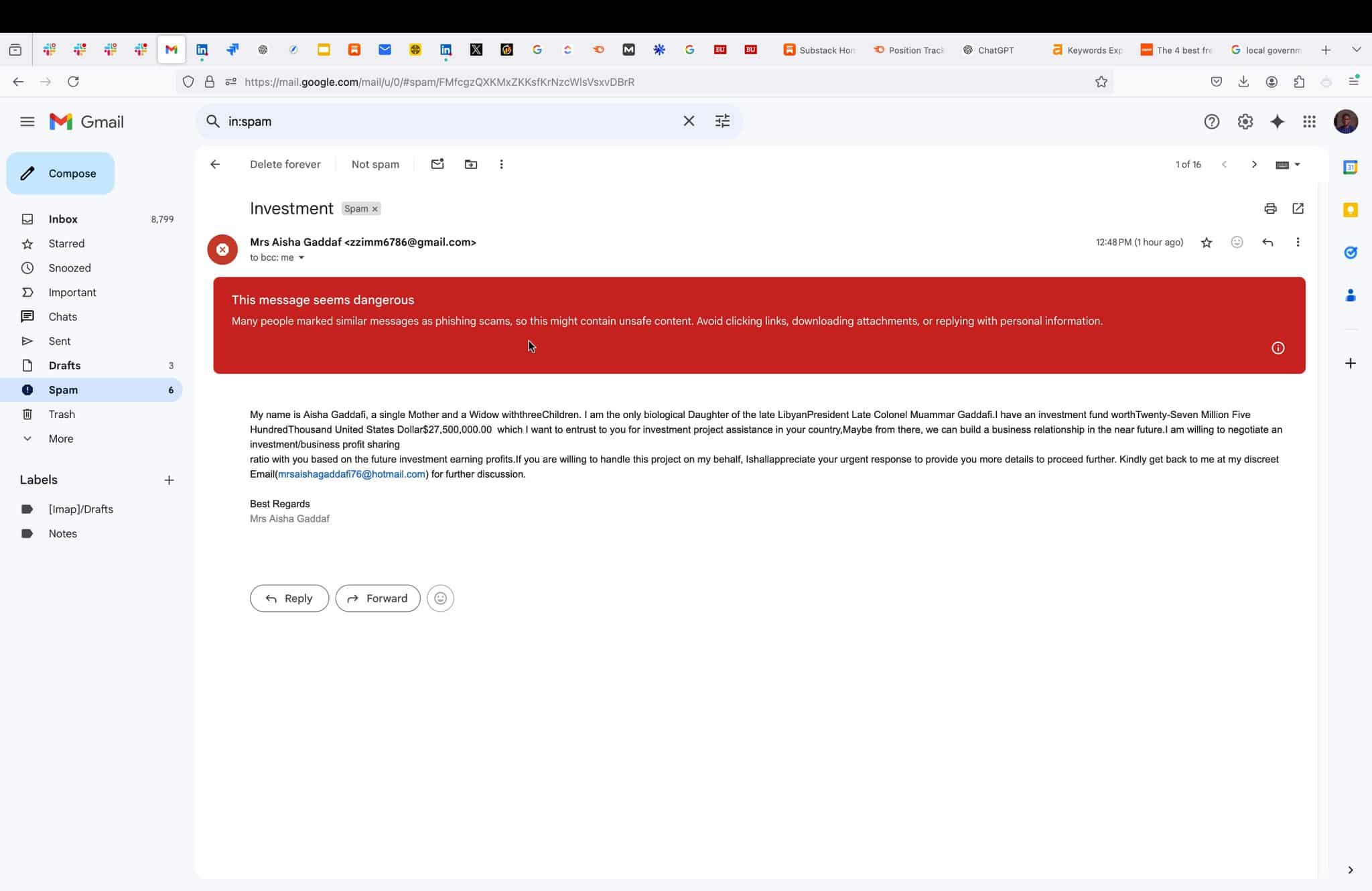 A Nigerian man shocks the internet as he shares a message he received from an individual claiming to be Aisha Gaddafi, the biological daughter of the late Libyan President, Colonel Muammar Gaddafi, who wants to entrust him with $27,500,000.00 for investment.