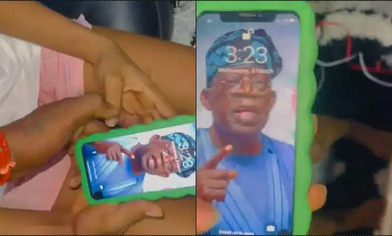 A video making the rounds on social media captured the moment a lady was condemned by her boyfriend over the wallpaper of Tinubu.