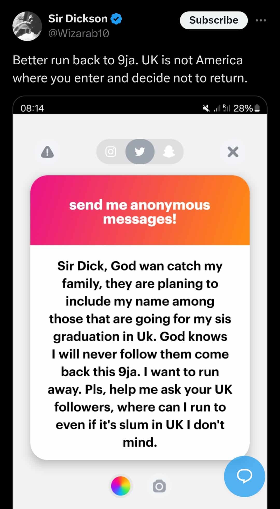His post read: “God wants to catch my family, they are planning to include my name among those going for my sister’s graduation in the UK.”