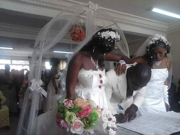 In a society where monogamy is well praised and a man marrying more than one wife is eing criticized except in certain cultures and religion, it is weird to see a man wed two wives in one ceremony.