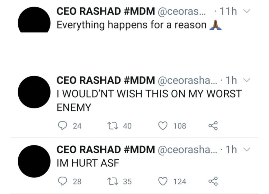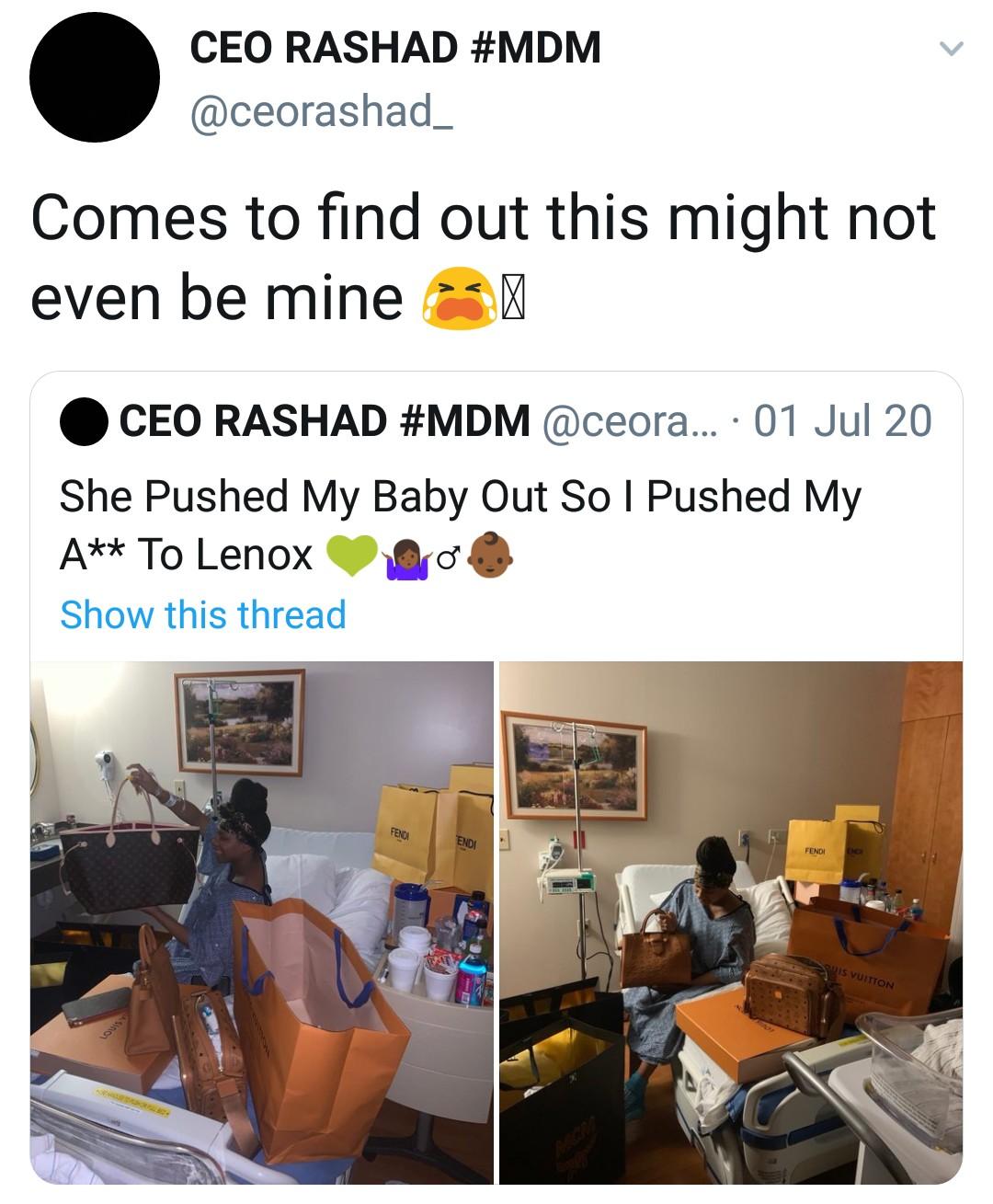 “Comes to find out this might not even be mine ?. I WOULD’NT WISH THIS ON MY WORST ENEMY. IM HURT”, he tweeted.