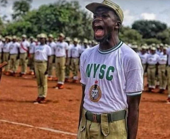In the viral photo, Umar Ibrahim was seen standing in front of other corps members with his mouth wide open, possibly singing the NYSC anthem.