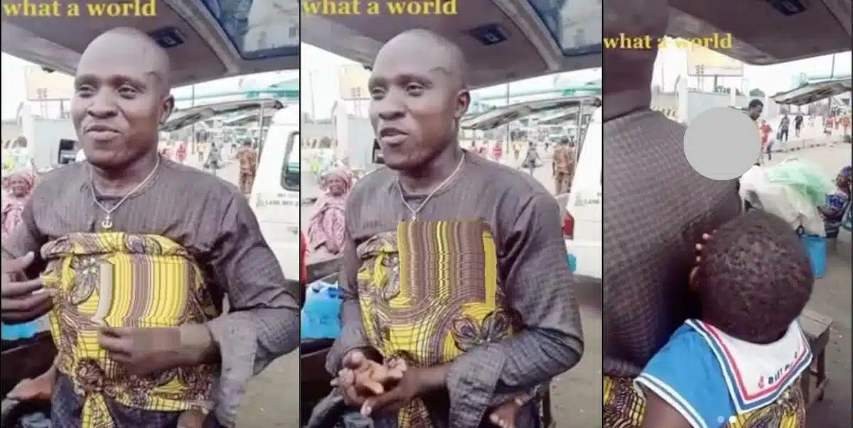 According to the man, his wife abandoned them in Lagos and ran without a word leaving him with the responsibility of taking care of their child.