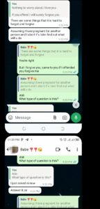 She then posed a troubling question: “Assuming I got pregnant by another guy and had an abortion, would you forgive me?”