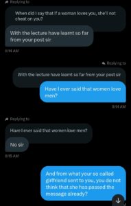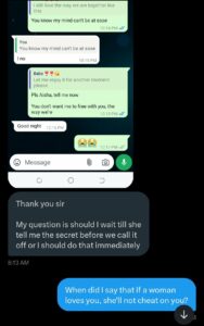 He also mentioned that she sometimes ignored his calls or claimed she didn’t hear her phone ring. In their most recent chat, the girlfriend expressed some concerns and asked for forgiveness if she had wronged him in any way.