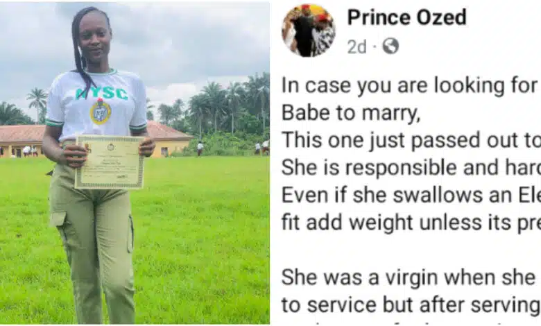 Prince Ozed’s post described Chioma as a responsible and hardworking individual who recently completed her compulsory national youth service program.