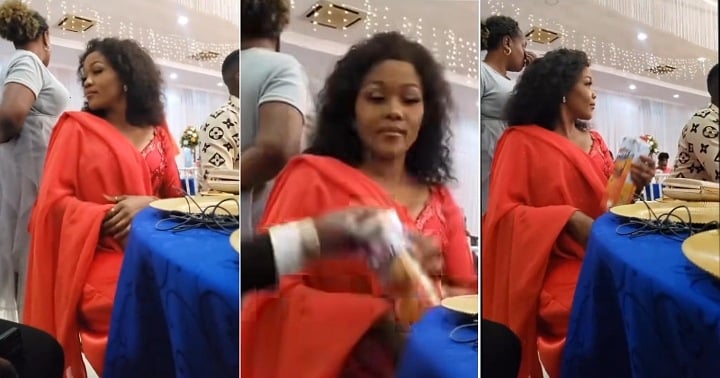 A Nigerian man was not having it after catching his wife hiding a pack of juice under the table during a wedding.