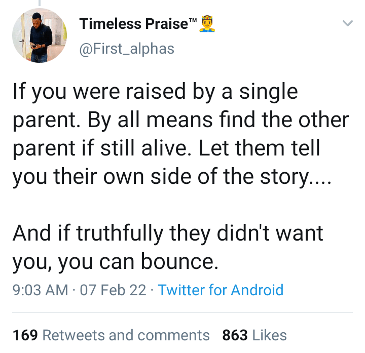 Man’s shocking story stems moral lesson that says ‘If you were raised by a single parent, find the other and hear his/her story’
