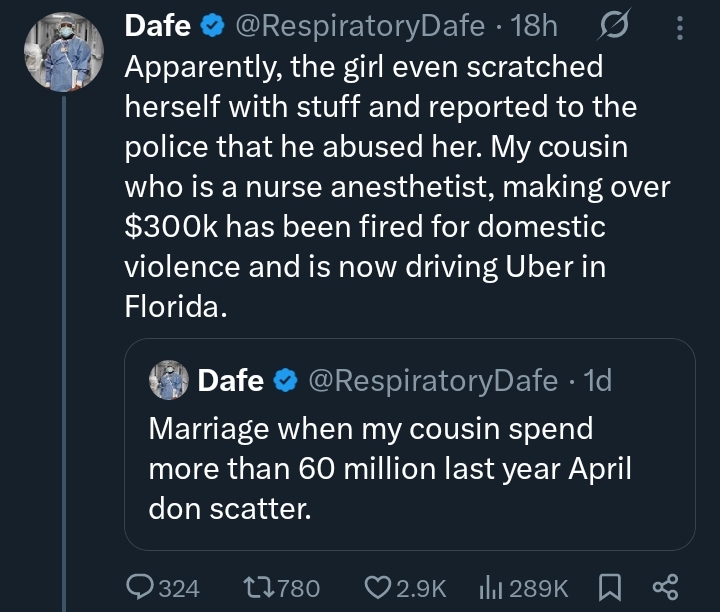 In his post, the man wrote, “Marriage when my cousin spend more than 60 million last year April don scatter.”
