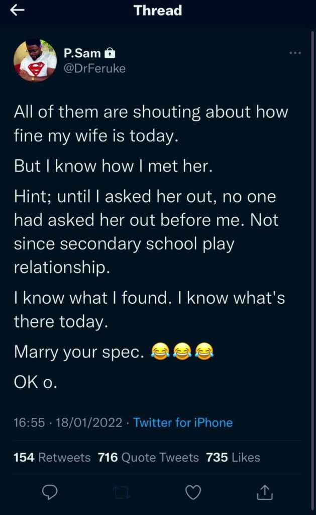 “Marry your spec” – Man advises as he narrates love story with his wife