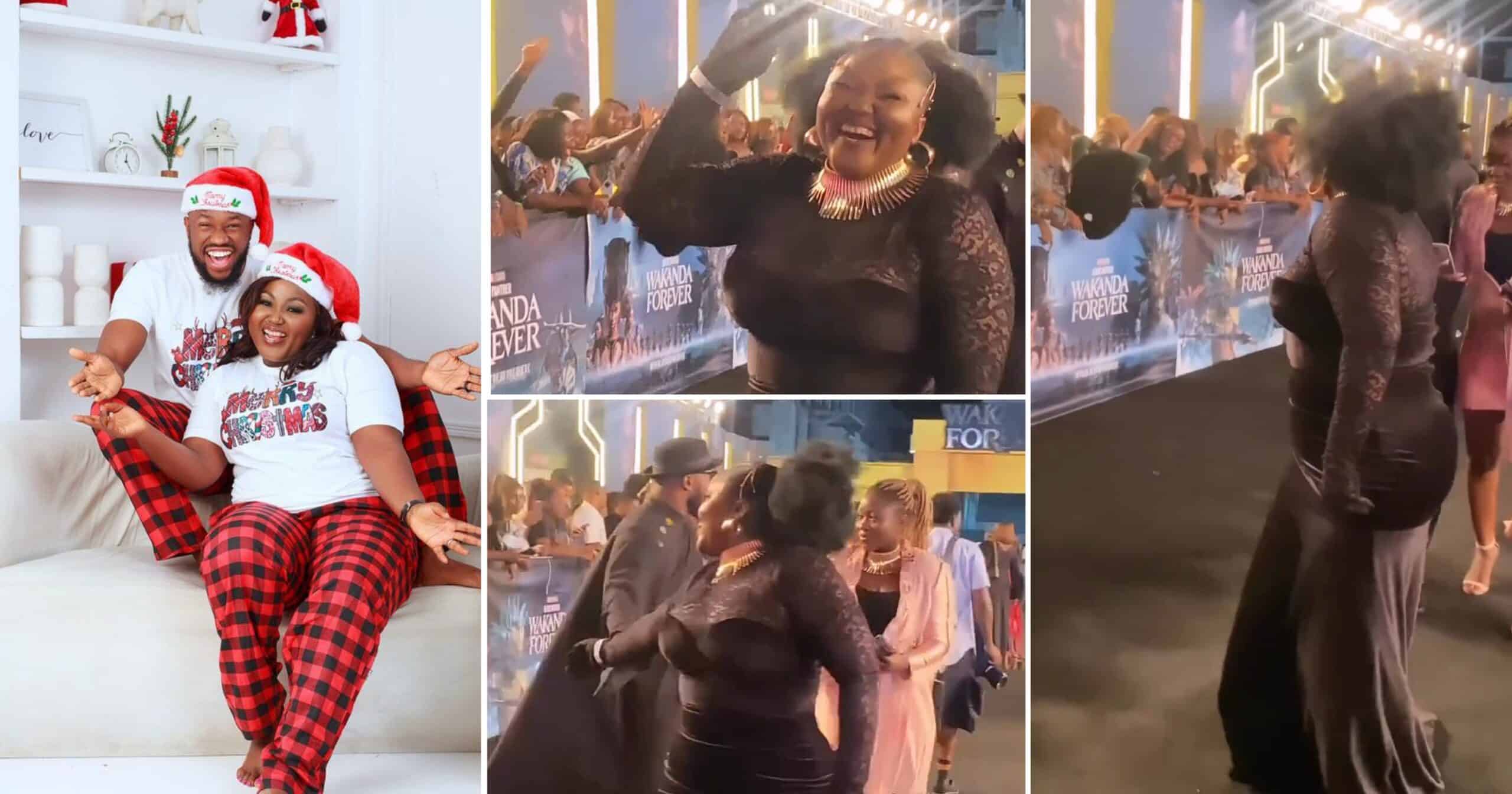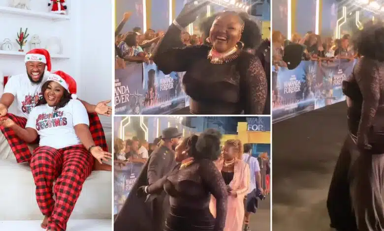 Netizens who came across the video claimed that he rejected his wife’s hand at the Wakanda Forever premiere in Lagos State.