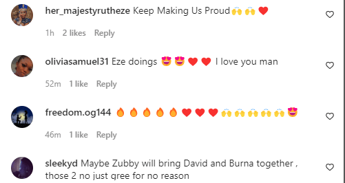 “Maybe Zubby will bring David and Burna together, those 2 no just gree for no reason,” a user wrote as a result of Zubby’s close relation with Davido who has been on loggerheads with Odogwu.