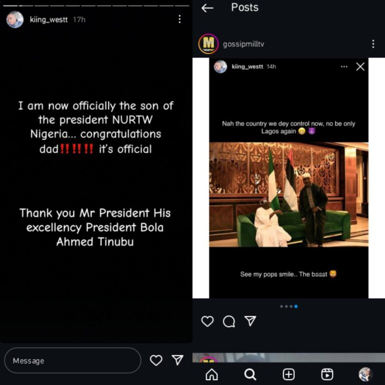 He celebrated his father’s victory on Instagram, proudly announcing that he’s now the son of the NURTW Nigeria president. In his congratulatory message, he also expressed gratitude to President Bola Ahmed Tinubu.