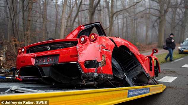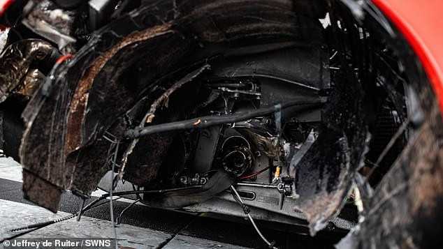 The £2.5 million Ferrari was severely damaged in the crash, which resulted in the deployment of its airbags, with two wheels and various suspension components being ripped away.