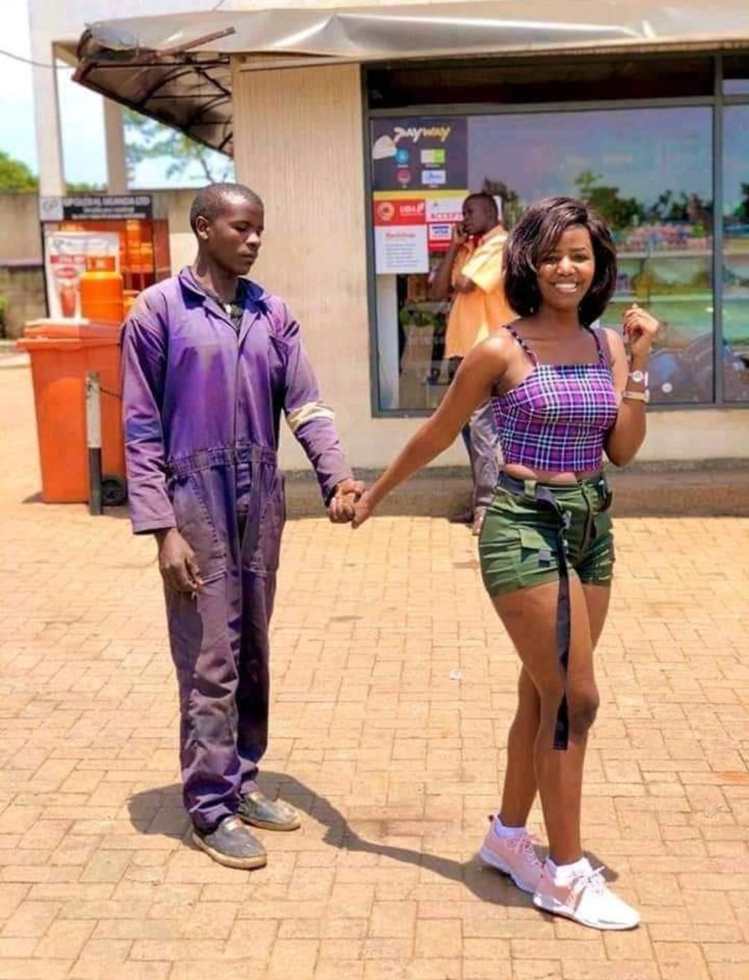 In the photos going viral on social media, the mechanic, from the look on his face, was somehow ashamed, because he was still on his untidy attire when she arrived.