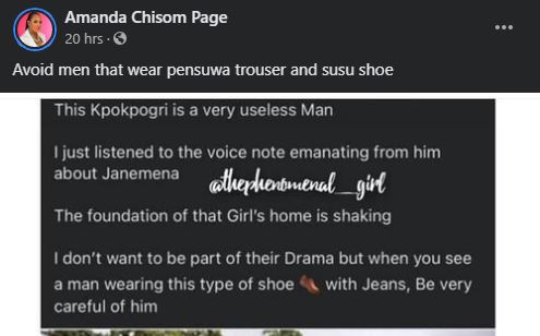 “Avoid men that wear pensuwa trouser and susu shoe”