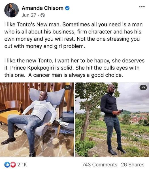 In a post she made on the 27th of June 2021, the social media influencer had endorsed Kpokpogri as the right man for Tonto Dikeh while pinpointing her cogent reasons.
