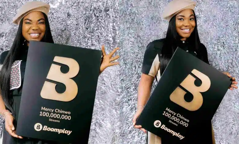 Popular gospel singer, Mercy Chinwo is overjoyed as her songs hit 100 million streams on the streaming platform, Boomplay.