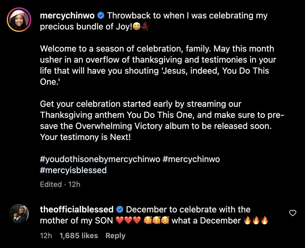 Welcome to a season of celebration, family. May this month usher in an overflow of thanksgiving and testimonies in your life that will have you shouting ‘Jesus, indeed, You Do This One,” she wrote.