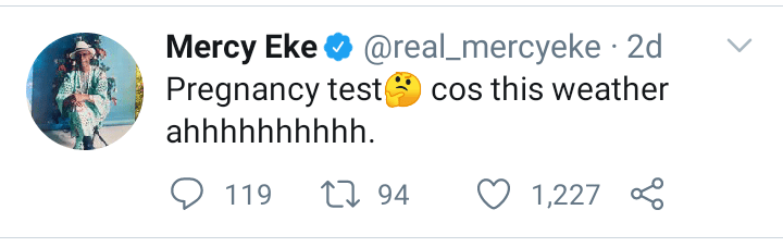 @Blessy chizzy: “If she says she is pregnant, then she is pregnant naa.. After all this weather is something else.”