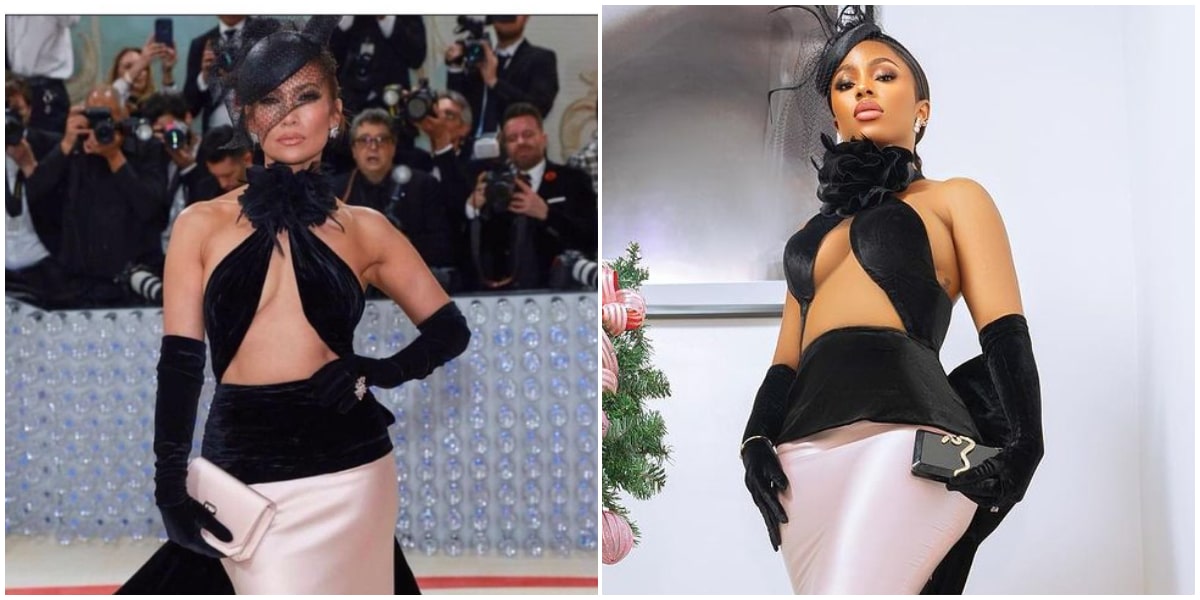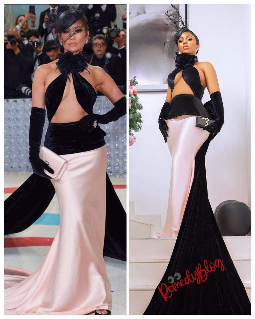 BBNaija reality star Mercy Eke has gotten many social media users in awe after she stepped out in a recreated outfit of American singer Jennifer Lopez.