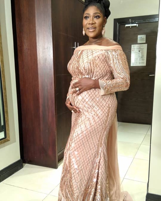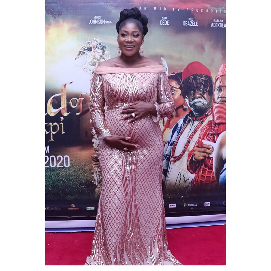 Nollywood actress, Mercy Johnson-Okojie whose pregnancy bump is now conspicuous, wowed fans and followers after she stepped out in a sequin dress for the premiere of her first directorial movie, The Legend of Inikpi, which was held in Lagos state.