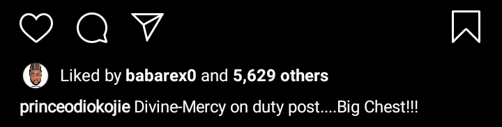 Sharing the adorable photograph on the photo and video sharing platform, instagram, Prince Odi Okojie wrote; “Divine-Mercy on duty post. Big Chest!”