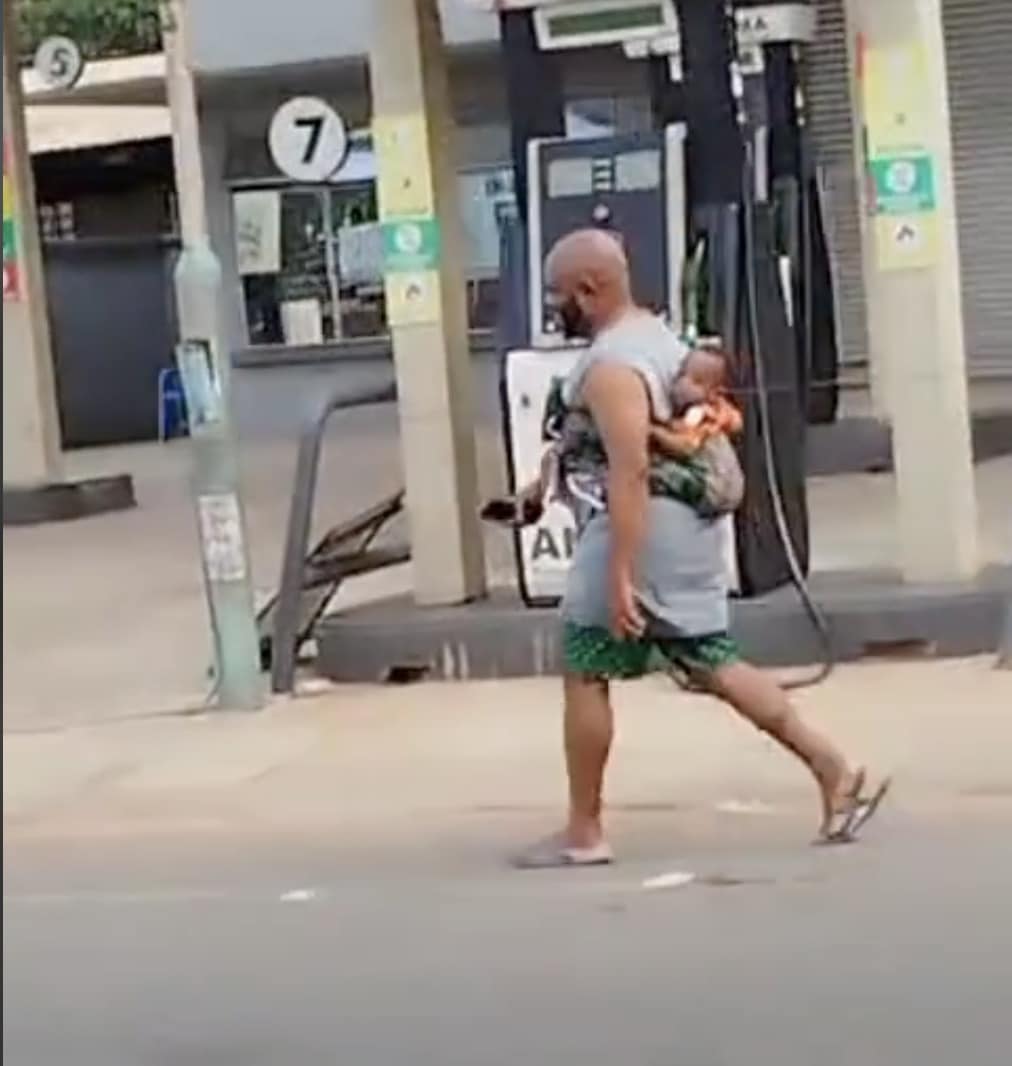 The clip has since gone viral, with viewers expressing their admiration for the man’s gesture of fatherhood. Despite the curious stares of onlookers, the man seemed unbothered, smiling and even waving at someone off-camera.