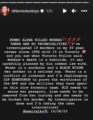 According to Kemi, Mohbad was killed and his killer is nobody else other than his wife. She utilized her 30 years of experience in cases like this as a surety.