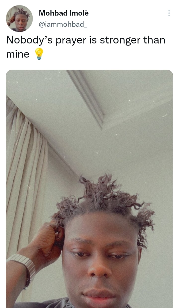 In the tweet which was shared via his official handle, Mohbad made it clear that no one prays more than him.