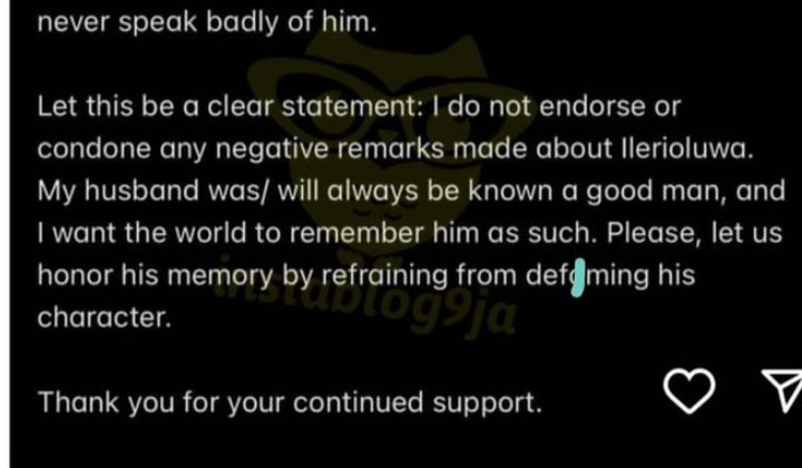 Disrespecting llerioluwa in his deQth is showing disdain for his entire family. Anyone who truly loved him would……………”