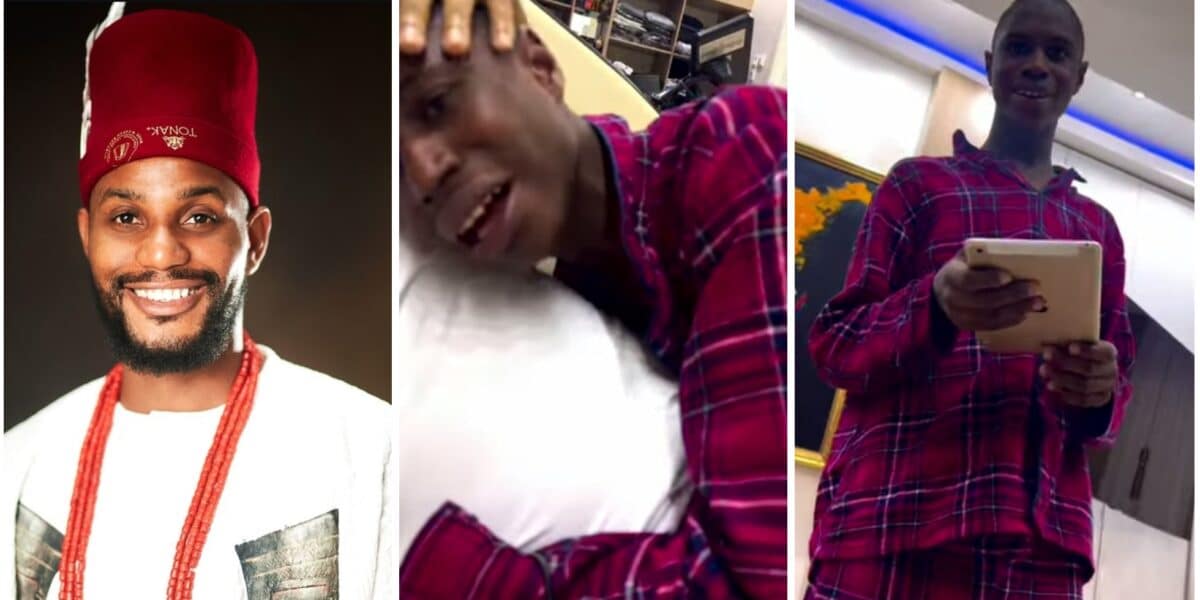 A heartwarming video has surfaced online, showing Nollywood actor, Alex Ekubo surprising his younger brother with an iPad, capturing his priceless reaction.