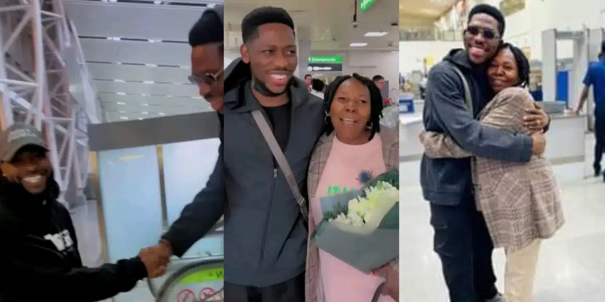In the now-viral clip, Moses Bliss and his mother are seen exiting an elevator to board a flight to the United Kingdom.