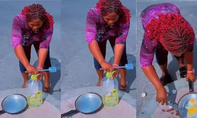 In the viral video, the woman can be seen placing a frying pan under the scorching sun, without the need for any gas or traditional cooking energy.
