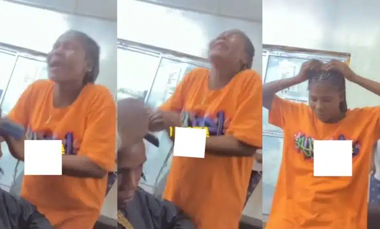 A video online captures the perplexing moment a young hairdresser almost transitioned into the spiritual realm while attending to a customer.