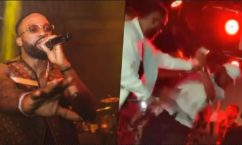 Moment Iyanya pushes fan off stage for slapping him with money (Video)