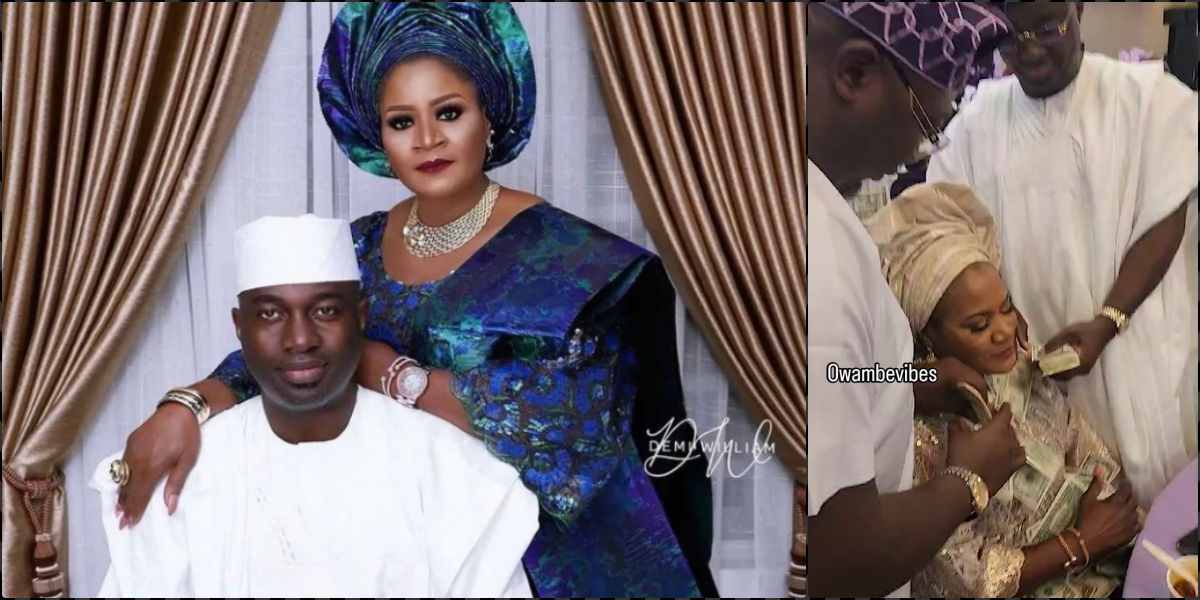 Notable businessman, Kazim Adeoti sparks mixed feelings with his first wife, Funsho at a party in the U.S. where she snubbed him while he rained money on her.